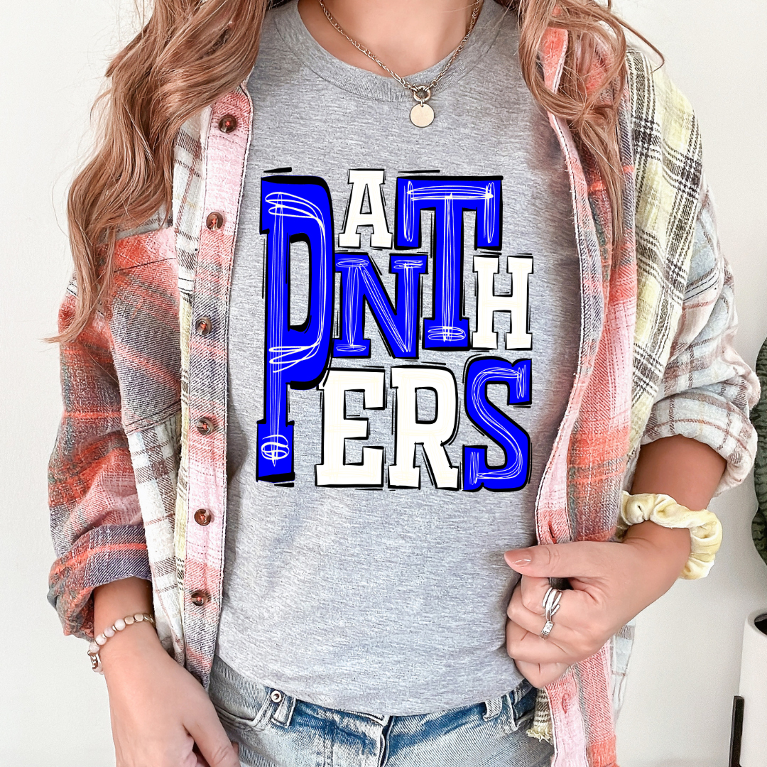 Panthers Blue and White Sporty Mascot DTF